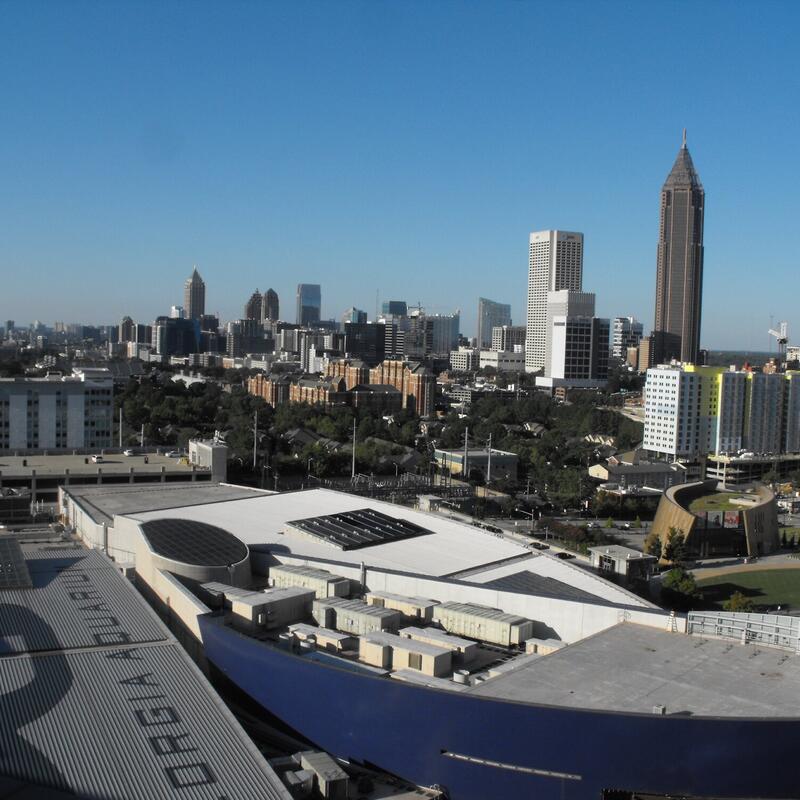 Ventanas is a private event facility that features dramatic floor-to-ceiling windows revealing a breathtaking view of Downtown and Midtown Atlanta. This extraordinary all-encompassing event venue is conveniently perched atop the fourteenth and fifteenth stories of the Park Pavilion building, which includes a 2,500 square foot outdoor patio, overlooking downtown Atlanta’s Centennial Park District.